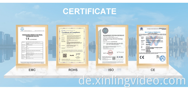 1) Alle unsere Produkte haben eine CE -Zertifizierung, ISO9001: 2008, ROHS.
